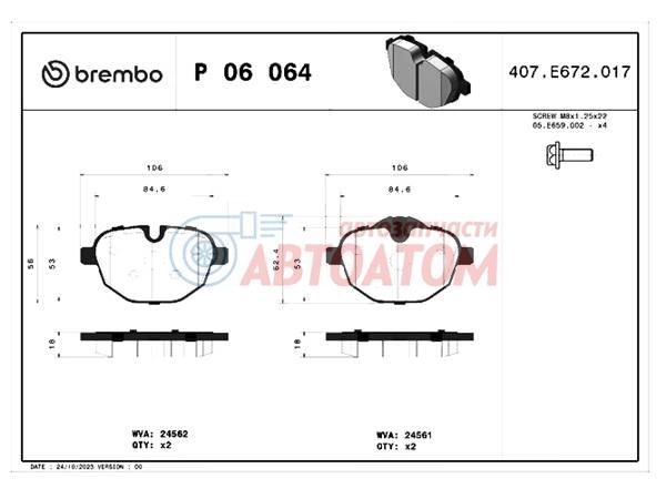 P06064 Колодки для задних тормозных суппортов, для автомобилей BMW-5, -7, X3, X4 и др.